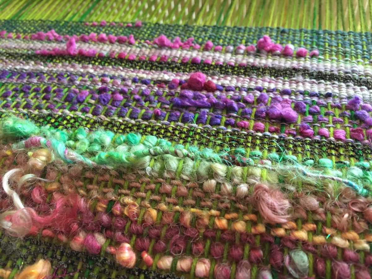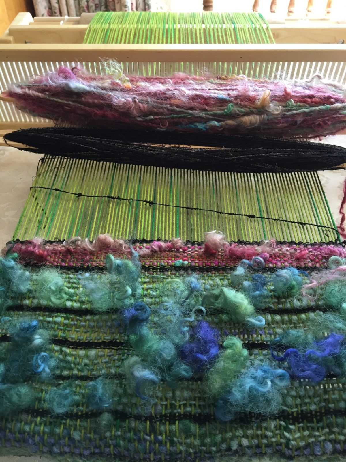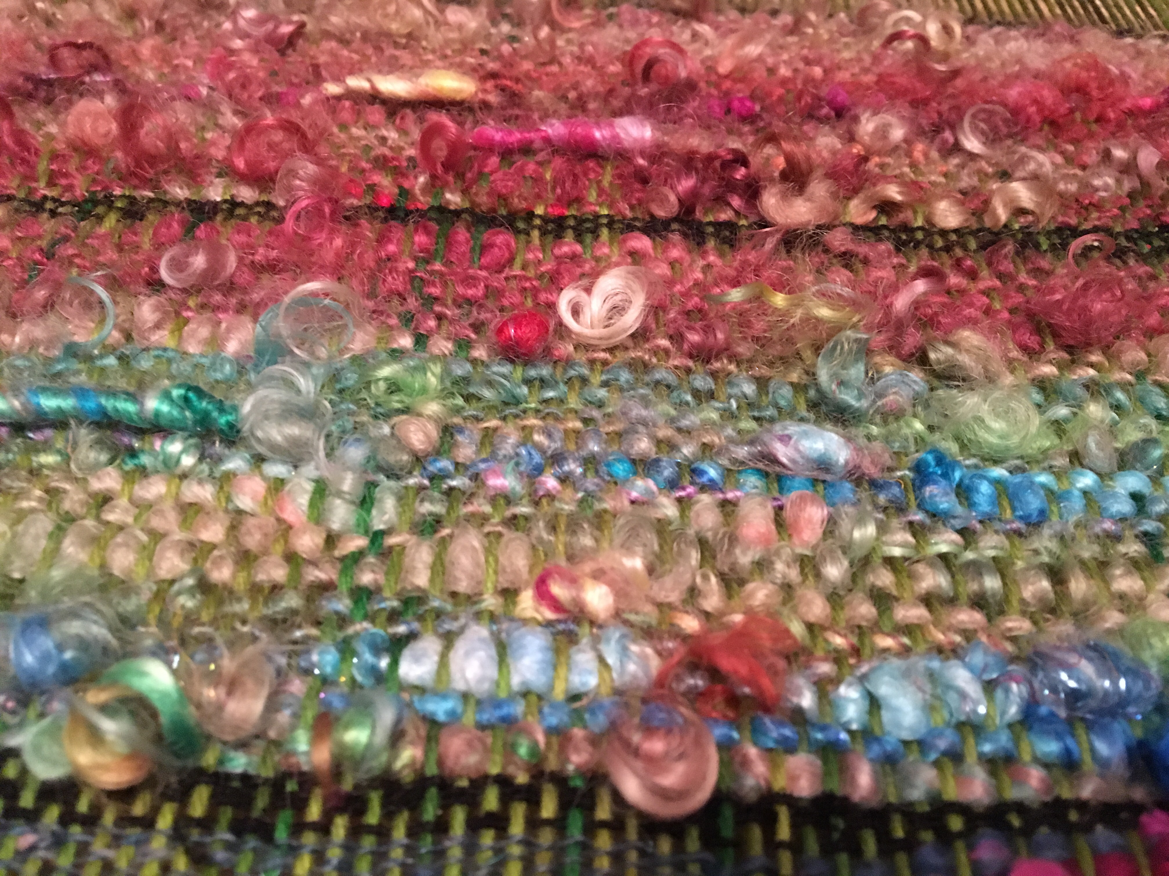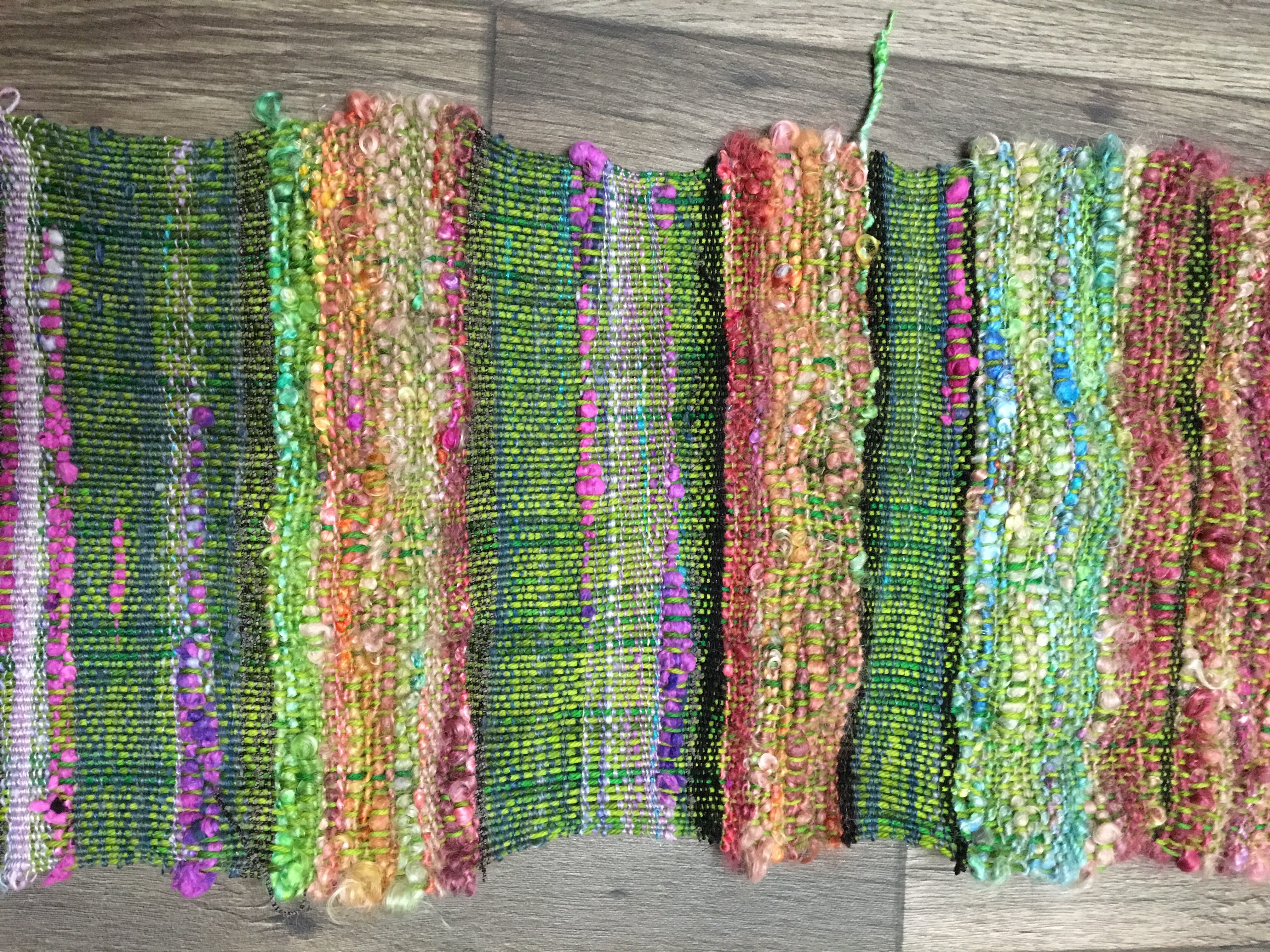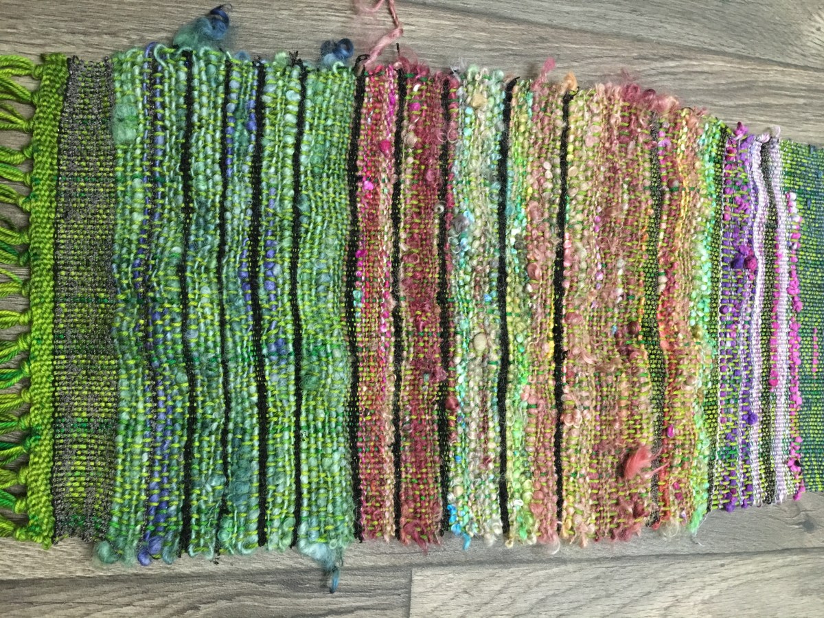 Aww this is so nice to hear!!! I made this first weaving project with no rhyme or reason and didn’t worry about color combos there was no plan except to try to weave. When I posted this people called it a “sampler” as it uses all the different yarns and textures. As far as handspun goes I’ve found that it can be used in place of any yarn for any pattern. Art yarn in place of traditional handspun really only needs a bigger set of needles or a hook to make the gauge match the fabric you ultimately love