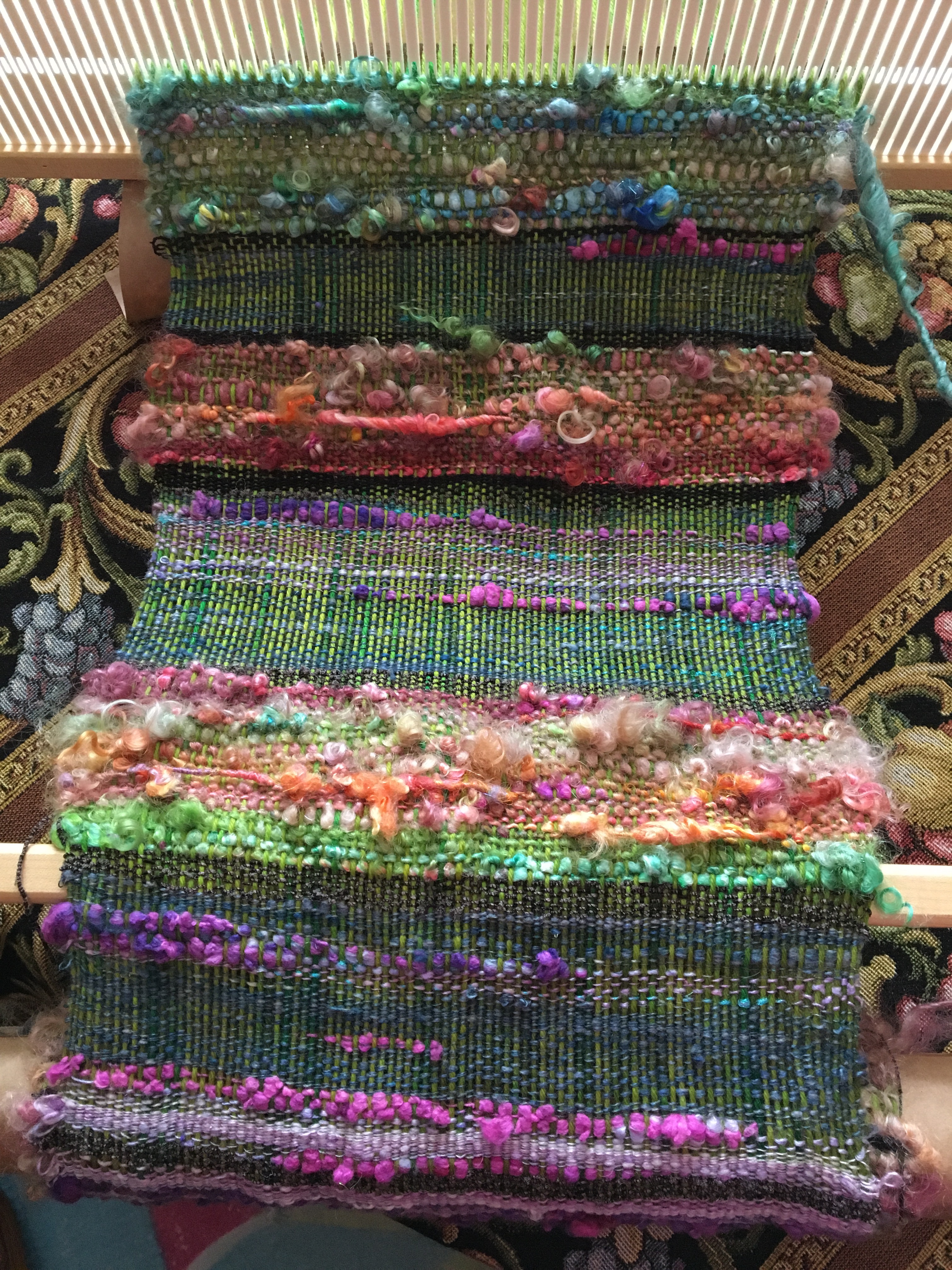 So far my knitting and crochet have been pretty vanilla but I want my weaving to be as free as my art yarns. For wearing, for fabric for accent pieces, and wall hangings. I already feel like weaving gives me a kind of freedom.