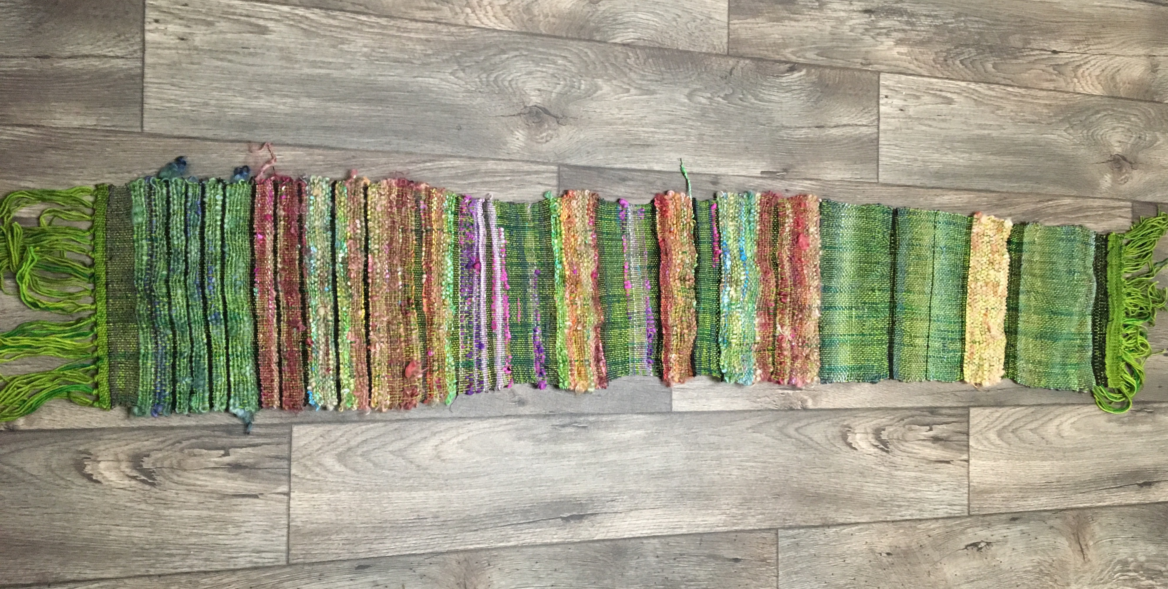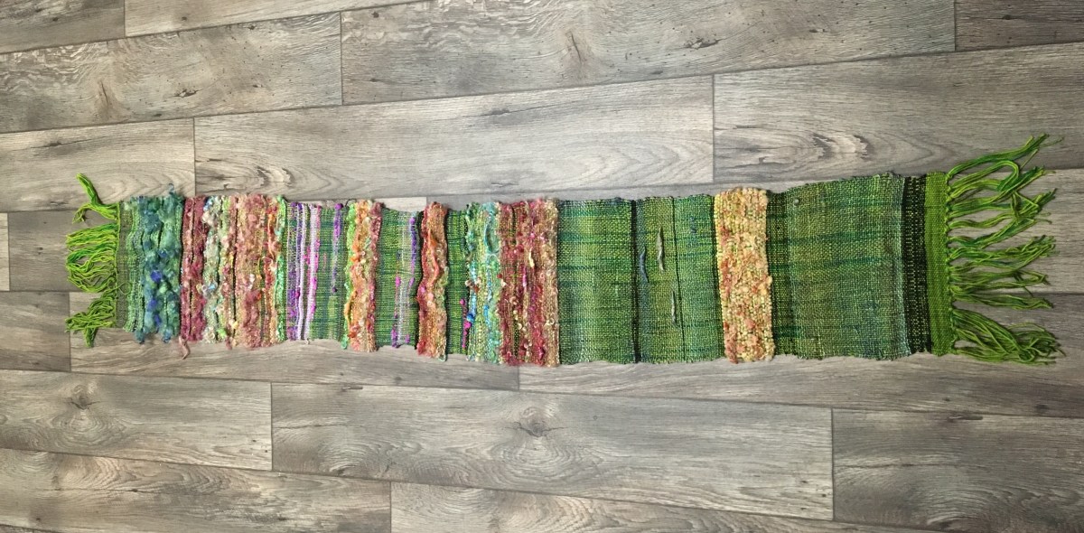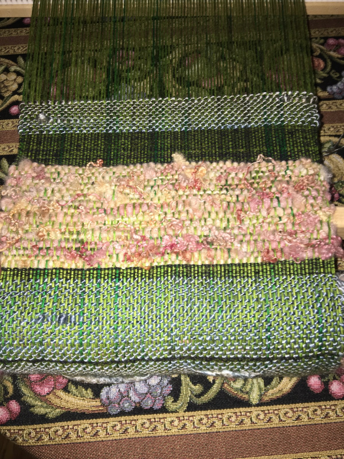 I also discovered how many different colors actually go with green. Weaving allowed me lots of color play that I never experienced with crochet or knitting maybe because it blends the color evenly throughout. Being over and under every thread. Whereas, with knitting or crochet it’s more color blocks.