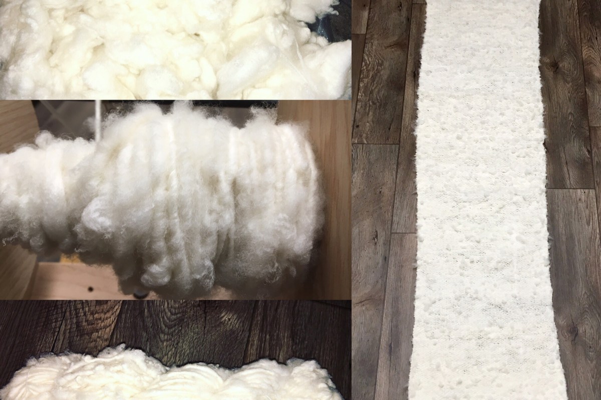This fleece is just gorgeous. Incredibly soft, from a coated sheep, crimp to sing about, and bright white. (Many of the pictures have a yellow cast from the lightbulb, but it’s a true white)