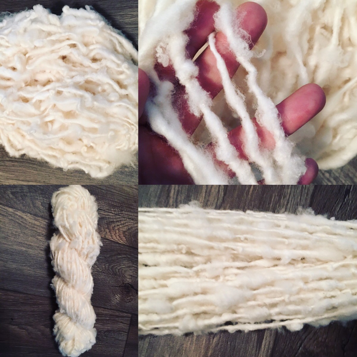 I would grab a handful of the clean locks, and lightly hand pick and spin magic thumb. I had spun 3 skeins when I thought how awesome a blanket would be. That was the plan when I warped the loom.